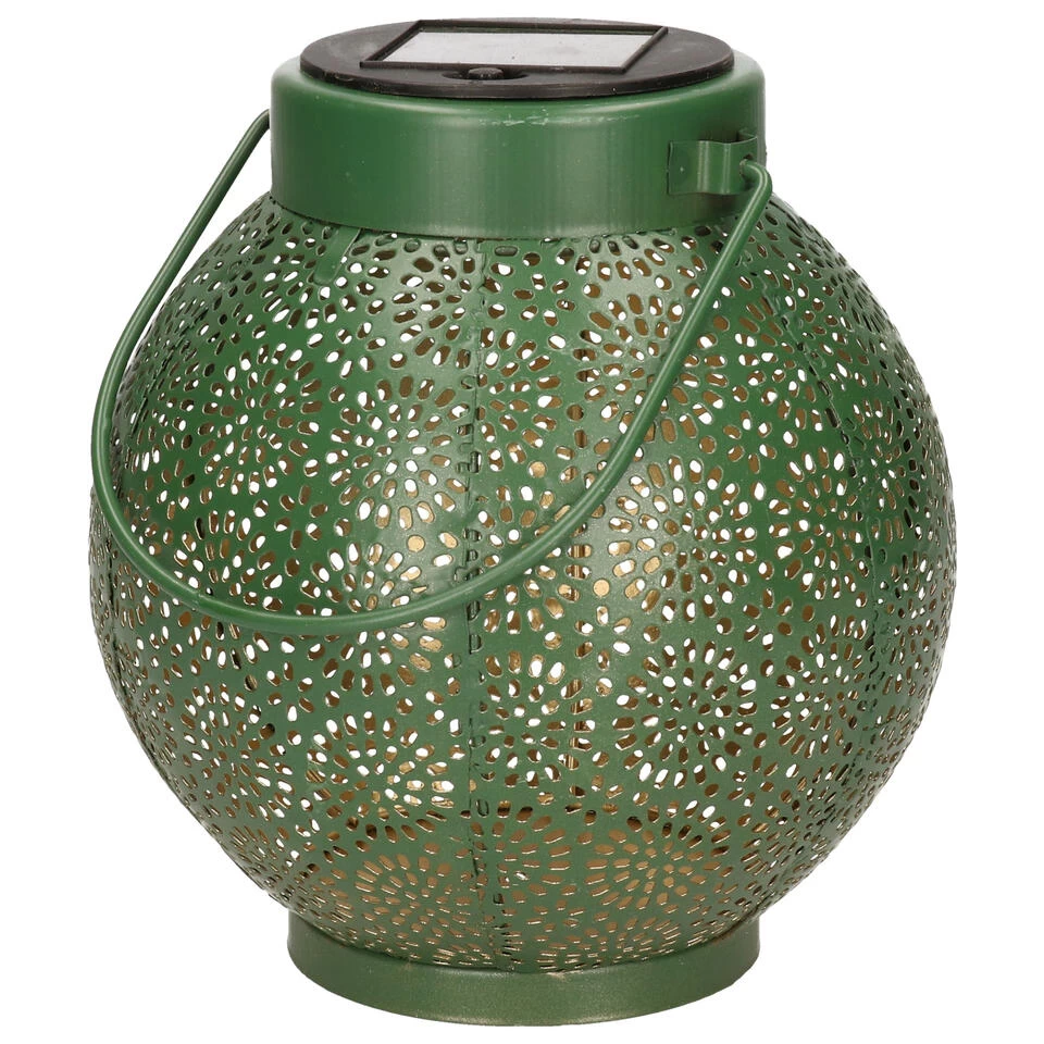 Lumineo Lantaarn – Solar – Groen – Metaal – Cirkel Patroon – 16 Cm