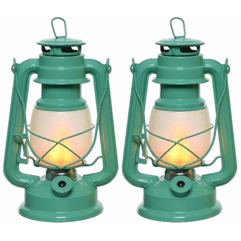Een klassiek uitziende, turquoise blauwe dimbare stormlantaarn met vlam effect LED verlichting. U kunt de lamp ophangen aan het hengsel of ring aan de bovenzijde, maar u kunt deze ook neerzetten. De lantaarn heeft een timer/tijdsklok van 6 uur waarna deze automatisch uitschakelt. Materiaal: metaal, glas, kunststof. Formaat: 24,5 cm hoog. Kleur licht: vuur/vlamkleur. Aantal lampjes: 21, niet vervangbaar. Dimbaar: ja. Batterijen: 4x AAA batterijen, niet inbegrepen. Branduren met nieuwe batterijen: ca. 15 uur. Campinglamp/campinglicht verlichting voor in de tent op vakantie. Tuinverlichting tuindecoratie.
