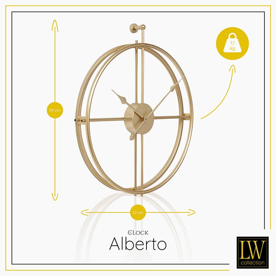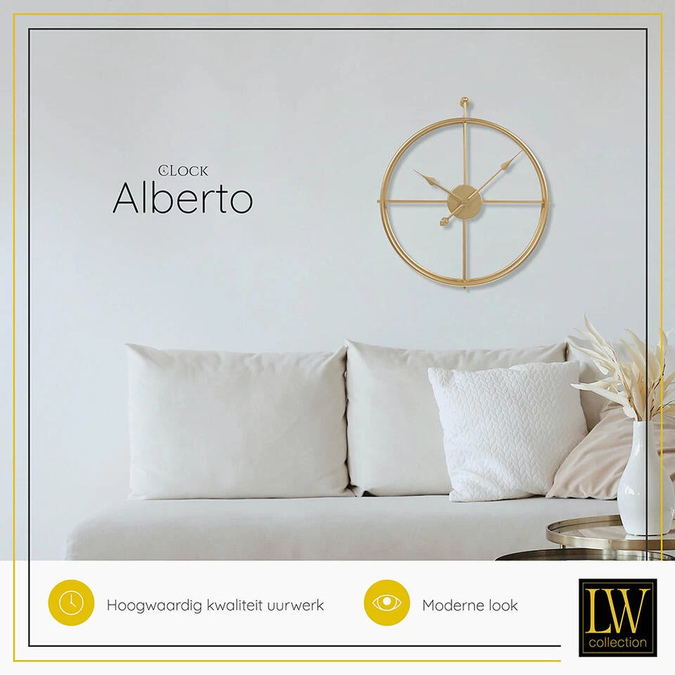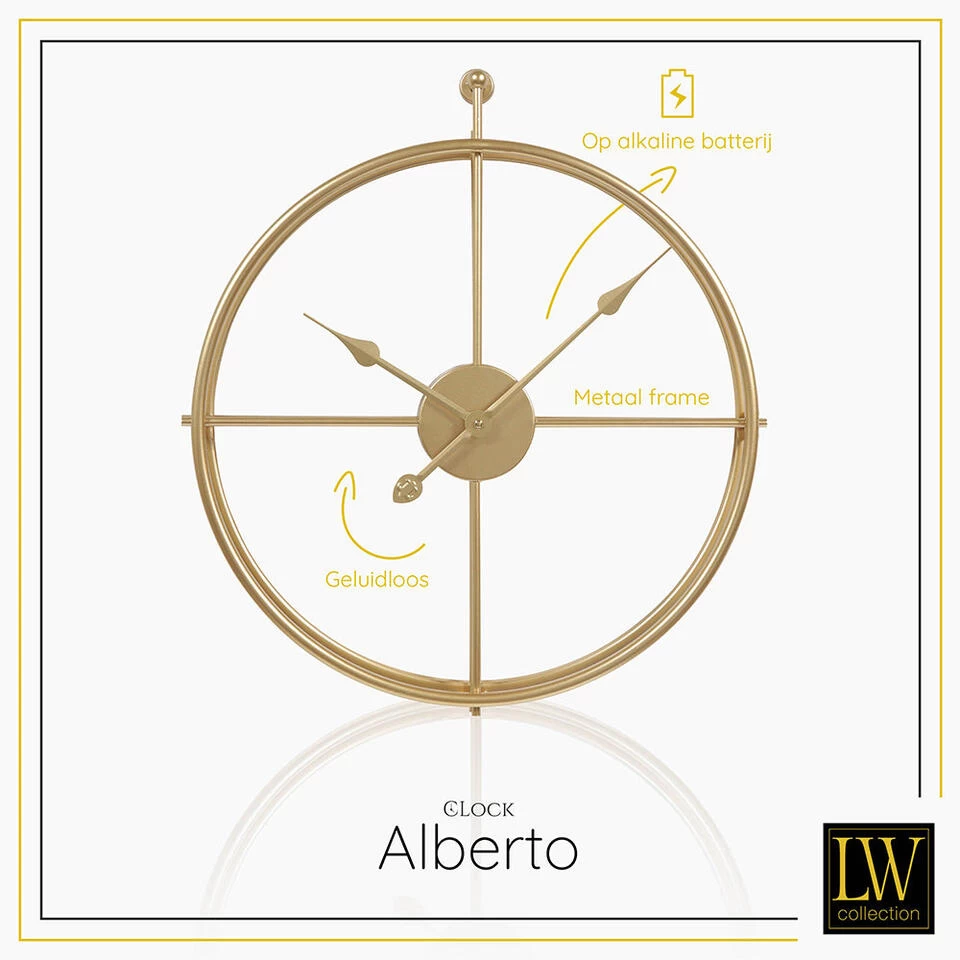 Zoekt u vooral een klok met een uitgesproken vormgeving of gaat u liever voor een neutrale klok die bij meerdere stijlen past? In de serie ALBERTO bieden wij unieke klokken van 52 CM aan in vier verschillende kleuren. Goud, zilver, zwart en een classy zwarte klok met gouden wijzers. Wandklok ALBERTO is geen standaard gouden klok die u in vele huishoudens zult treffen. Onze klanten die deze mooie goudkleurige klok in huis haalden zochten expliciet naar een exclusieve eyecatchende klok aan de muur.