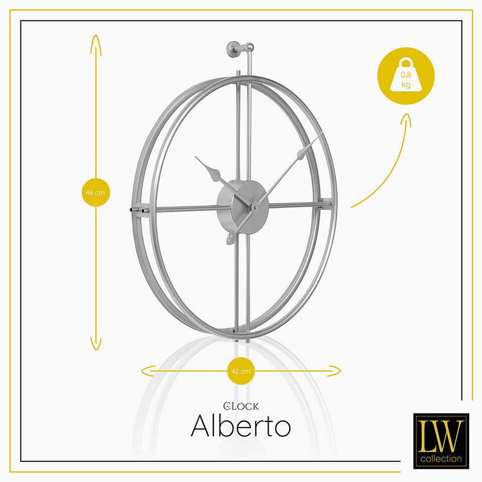 Wandklok ALBERTO is geen standaard klok die u in vele huishoudens zult treffen. Onze klanten die deze mooie klok in huis haalden zochten expliciet naar een exclusieve eyecatchende zilveren klok aan de muur.