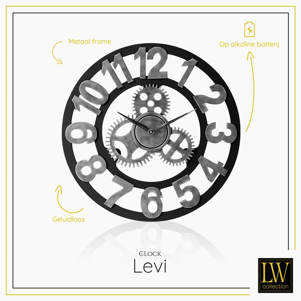 Liefhebbers van robuuste klokken kunnen hun hart ophalen! Nieuw in ons assortiment is deze stoere klok uit de serie LEVI. Deze opvallende klok is nog niet zo lang bij LW Collection verkrijgbaar en nu al één van onze hardlopers!