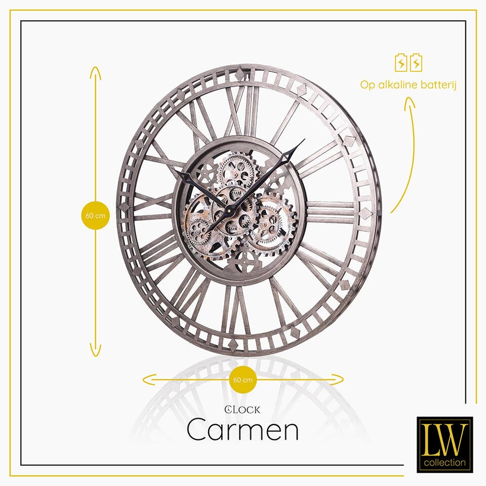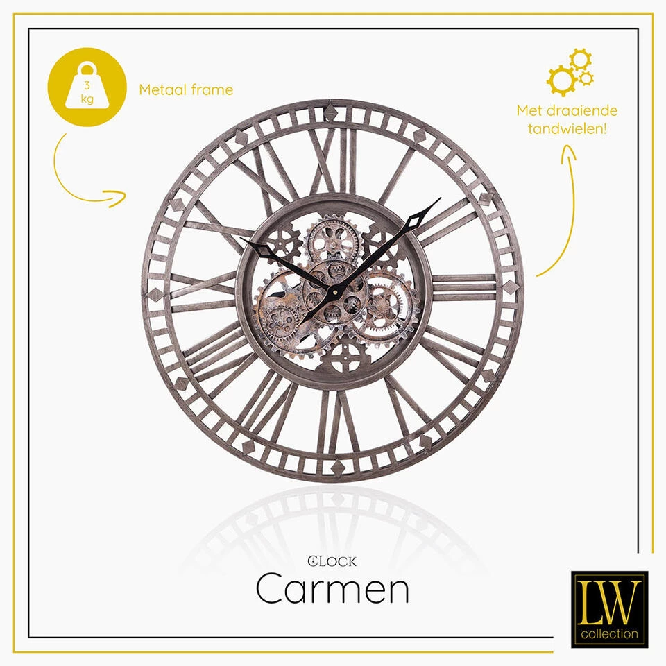Bent u op zoek naar een luxe radar wandklok die uw woonkamer, slaapkamer of andere ruimte in huis compleet maakt? U kunt uw zoektocht staken! LW Collection biedt een breed assortiment aan wandklokken met draaiende tandwielen voor diverse interieurstijlen. Zo ook deze prachtige klok met een afmeting van maar liefst 60cm uit de serie CARMEN.