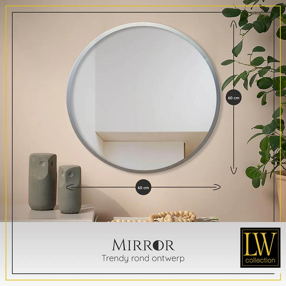 LW Collection Wandspiegel Zilver Rond 60×60 Cm Metaal