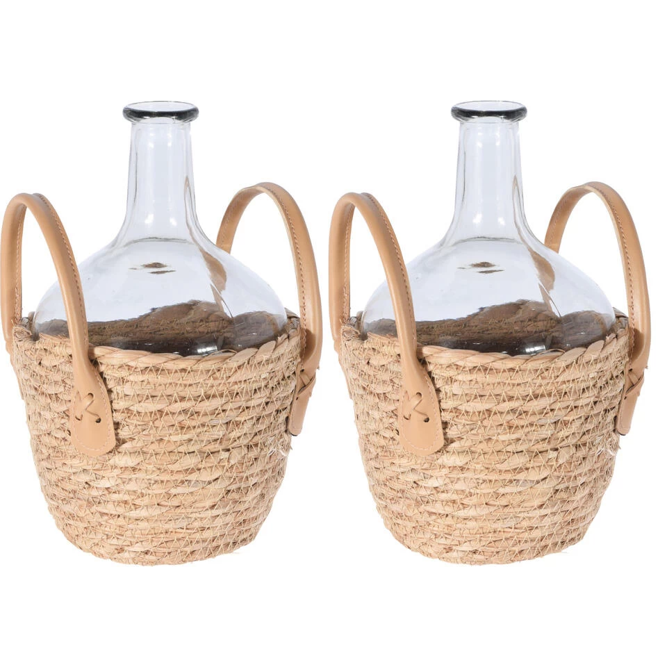Merkloos Bellatio Design Vaas – Flesvaas – Met Gevlochten Mand – 18 X 27 Cm