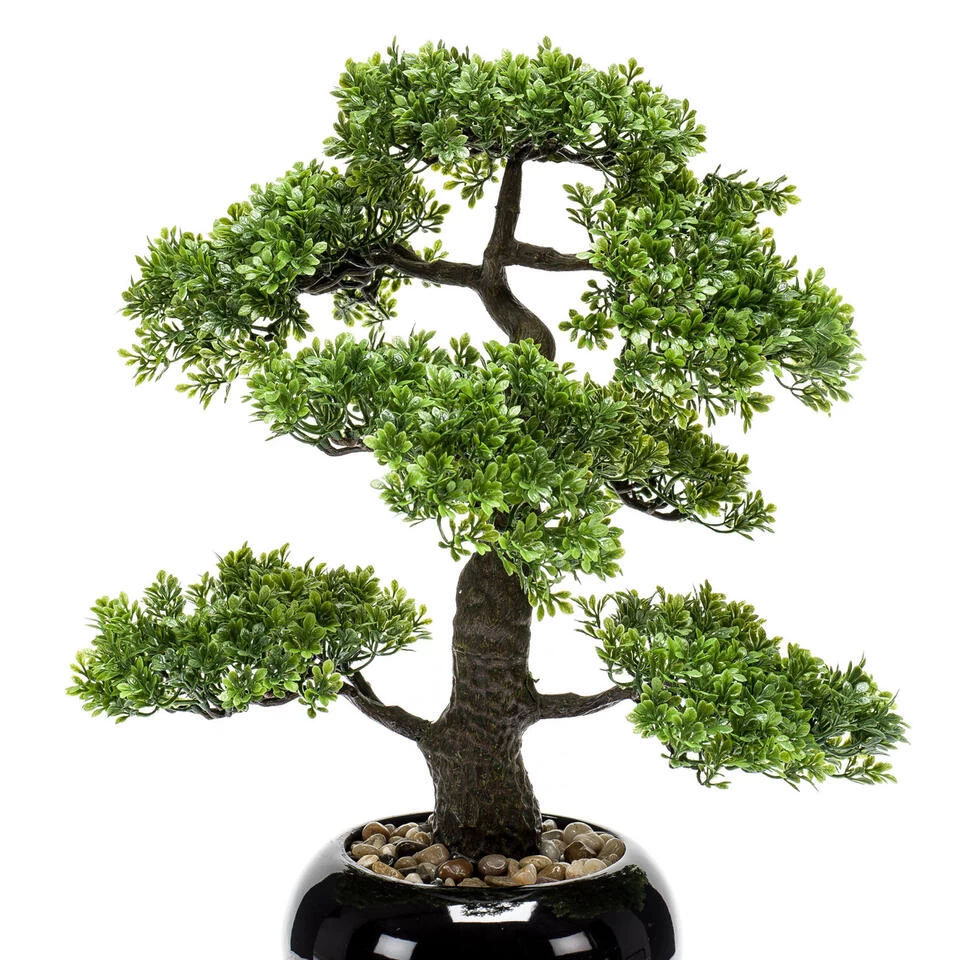 Bonsai boompje kunstplant in kunststof pot 47 cm. Een mooie, realistisch uitziende mini boom/plant, in een zwarte pot. Geschikt voor binnenshuis.