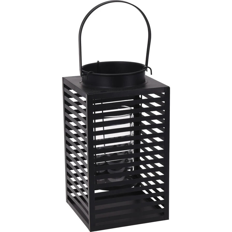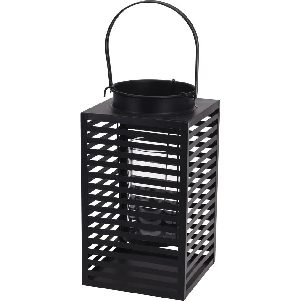 Merkloos Lantaarn – Metaal – Zwart – Windlicht – 12 X 24 Cm