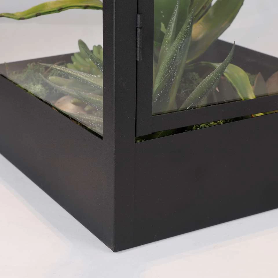 De meeste lantaarns zijn bedoeld voor kaarsen, maar de Flint van Mica Decorations heeft een andere functie. Je kunt hem namelijk gebruiken als plantenterrarium. Kies wat leuke plantjes en creëer een groene oase. Aan de bovenkant zijn vier LED lampjes bevestigd, zodat je alles goed kunt belichten. Erg mooi! De Flint lantaarn is gemaakt van zwart metaal en past door zijn strakke, hedendaagse uitstraling in elk interieur. Daarnaast is hij verkrijgbaar in verschillende afmetingen, zodat er altijd wel een passende maat te vinden is. Dit model is L16,5 x B16,5 x H41,5 cm.