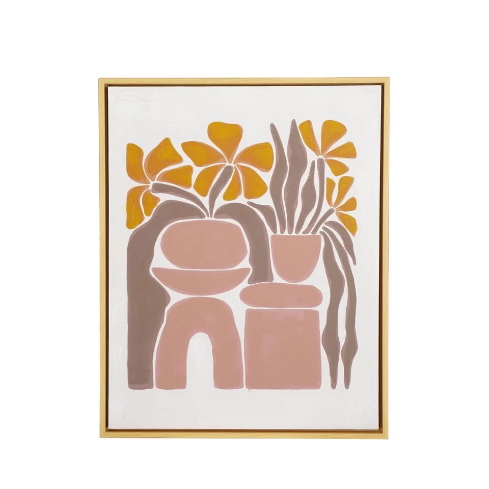 Deze stijlvolle muurdecoratie van Mica Decorations valt meteen op door de abstracte print van een plant met bloemen in een roze pot. Het doek van canvas is ingelijst in een houten lijst en heeft een afmeting van L40 x H50 cm. Past perfect in een modern interieur! Ook stijlvol om te combineren met andere prints uit de collectie van Mica Decorations. Waar hang jij deze moderne muurdecoratie op?