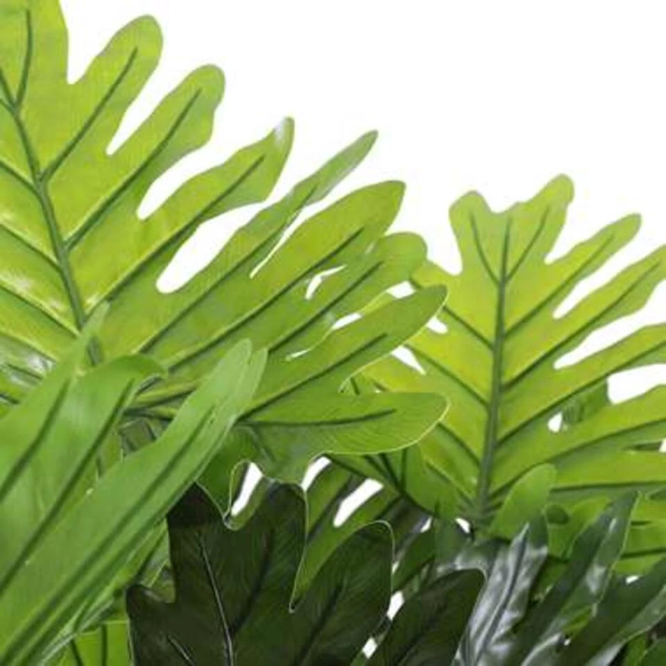 Philodendron kunstplant van H95 x Ø70 cmGespleten bladeren in verschillende maten en groentintenStevige, groene stelen die tot in detail zijn nagemaaktDe plant is gemaakt van polyester en vergt geen onderhoudWordt geleverd in een kunststof pot van H14,5 x Ø17 cmKlaar om zorgeloos te genieten? De kunstplanten van Mica Decorations zijn niet van echt te onderscheiden, maar hebben geen enkel onderhoud nodig. Deze Philodendron valt op door het grote, gespleten blad, uitgevoerd in verschillende maten en groentinten voor een natuurlijk effect. De plant is stevig verankerd in een zwarte kunststof pot, maar moet voor gebruik wel nog in model worden gebracht. Vuistregel: het blad moet je aankijken. Zet hem na het uitvouwen zo neer, of gebruik de kunststof pot als stevige basis voor een sierlijke overpot. Combineer hem met andere kunstbloemen en -planten uit de collectie en breng meer groen in huis.