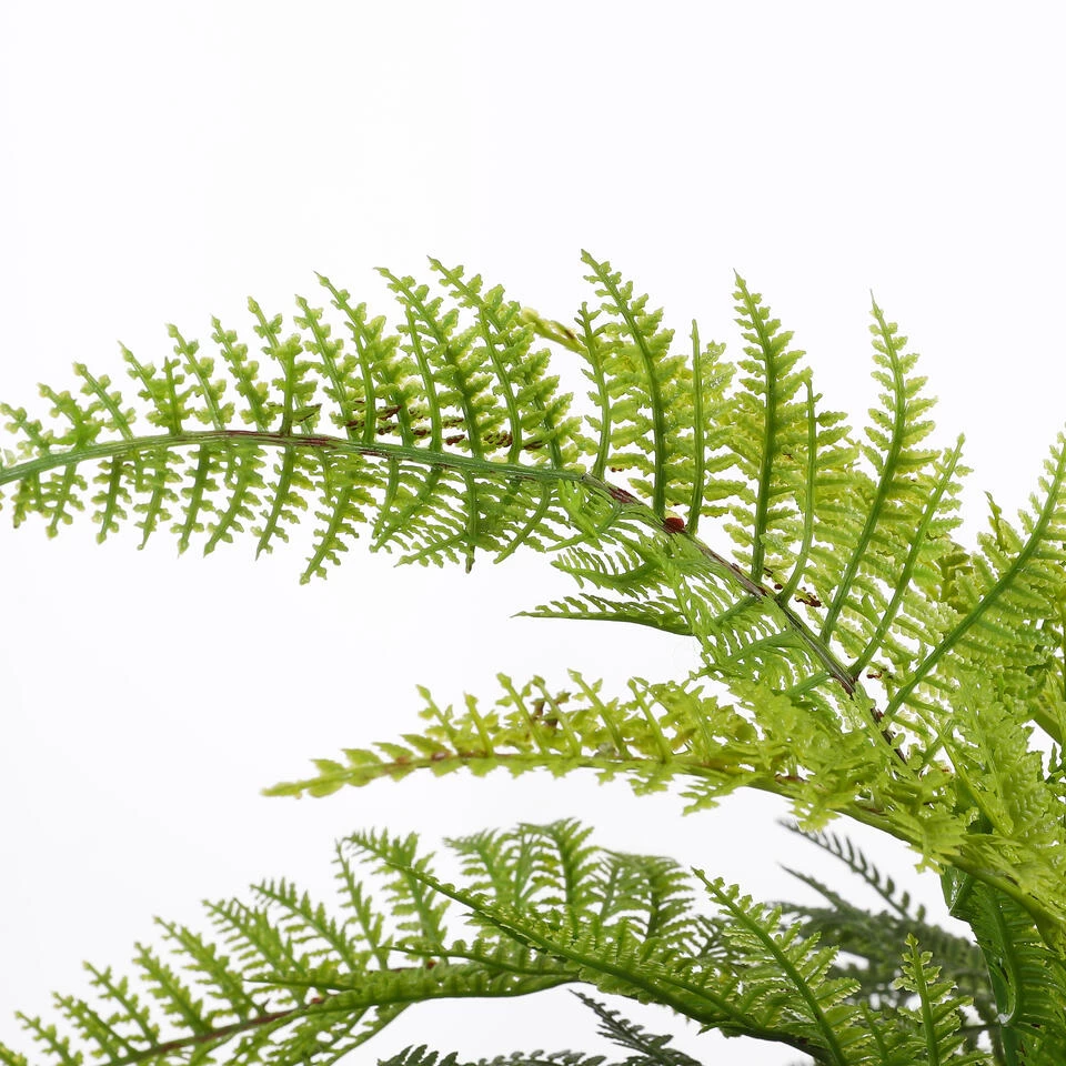 Klaar om zorgeloos te genieten? De kunstplanten van Mica Decorations zijn niet van echt te onderscheiden, maar hebben geen enkel onderhoud nodig. Deze groene varen valt op door de groene, diep ingesneden, krullende bladeren. Levensecht, maar met alle voordelen van een kunstplant. De plant is al gemodelleerd en stevig verankerd in een unieke, terracotta bloempot met basalt grijze pigmenten. Na aankoop kan de plant dus direct worden neergezet, of gebruik de meegeleverde pot als stevige basis voor een sierlijke overpot. De afmetingen zijn H38 x Ø50 cm.