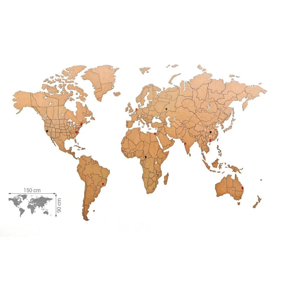 Met de MiMi Innovations True Puzzel 150×90 cm/59.1×35.4 inch heb je een zeer gedetailleerde wereldkaart van milieuvriendelijk en FSC-gecertificeerd hout als exclusieve decoratie aan de muur.