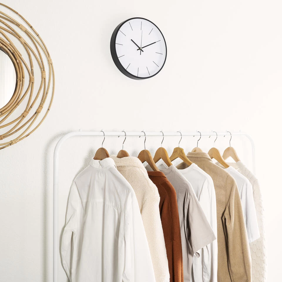 Wit en zwart, minimalistischer kan niet Deze muurklok van QUVIO is eenvoudig en daarom is ze overal inzetbaar. Zowel tegen een witte of een grijze als tegen een zwarte muur staat deze klok perfect. Maar ze is ook te combineren met een achtergrond met strepen, bloemmotieven, geometrische motieven of een effen muur in felle kleuren. Juist door haar eenvoud en haar minimalistisch design valt deze klok op.