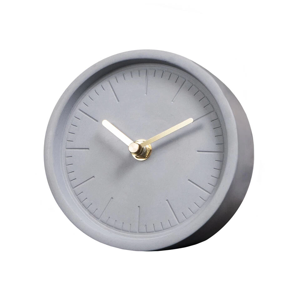 QUVIO Tafelklok Beton – Rond met Gouden Wijzers – Grijs