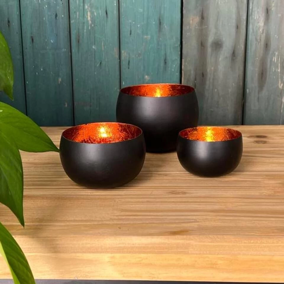 Deze Windlichtjes geven door de koperen binnenkant veel licht af en overdag zónder kaarsjes aan, zullen ze ook zeer mooi schitteren!