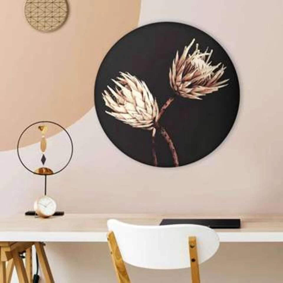 Deze wanddecoratie is uniek door de ronde vorm. Het product kan worden opgehangen door middel van het haakje aan de achterzijde. Deze ronde blikvangers zijn dè nieuwe trend en zijn goed te combineren met andere motieven.Kenmerken