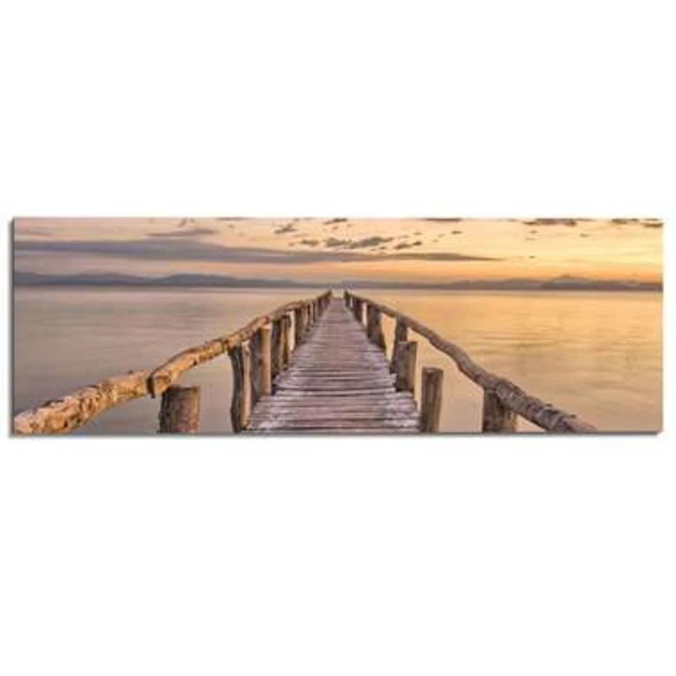 Schitterend uitzicht over een rustieke steiger aan een rustig meer. Dit schilderij bestaat uit een poster die verwerkt is op een 3mm dikke plaat uit MDF. Op de achterkant is een solide raamwerk aangebracht van maar liefst 2cm dik. Hieraan kan deze muurdecoratie eenvoudig worden opgehangen en krijgt het een bijzonder zwevend effect. Deze wanddecoratie is geschikt voor elke ruimte in huis.Kenmerken