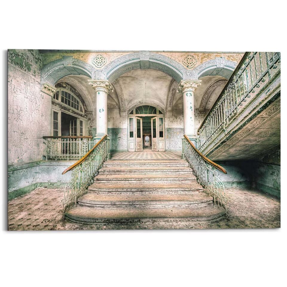 Deze afbeelding van een verlaten ingang heeft een industriële uitstraling. Deze muurdecoratie past erg goed in een woonkamer, werkkamer of in een hal. Dit schilderij bestaat uit een poster die verwerkt is op een 3mm dikke plaat uit MDF. Op de achterkant is een solide raamwerk aangebracht van maar liefst 2cm dik. Hieraan kan deze muurdecoratie eenvoudig worden opgehangen en krijgt het een bijzonder zwevend effect. Deze wanddecoratie is geschikt voor elke ruimte in huis.Kenmerken