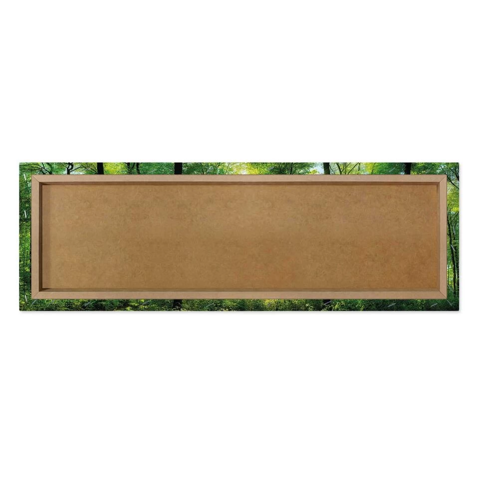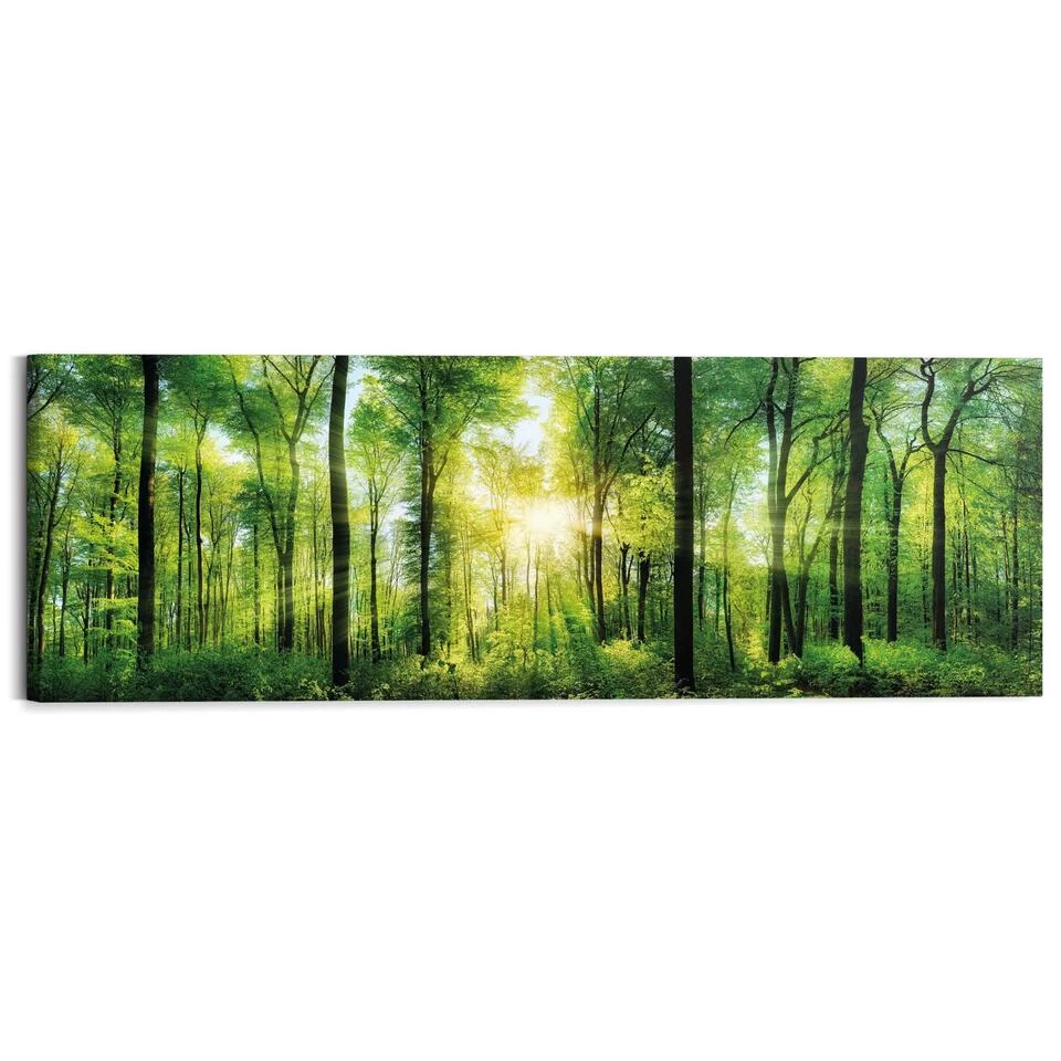 Zonnestralen door een zomerbos. Print op hoogwaardig papier, verwerkt op een HDF plaat. De wanddecoratie is aan de achterkant voorzien van een MDF-frame waaraan je het schilderij eenvoudig kunt ophangen. Doordat de print om de 2cm dikke randen van het frame is gevouwen, vormt het geheel een mooi “block” aan je wand. Deze muurdecoratie is voor alle kamers in huis geschikt.Kenmerken