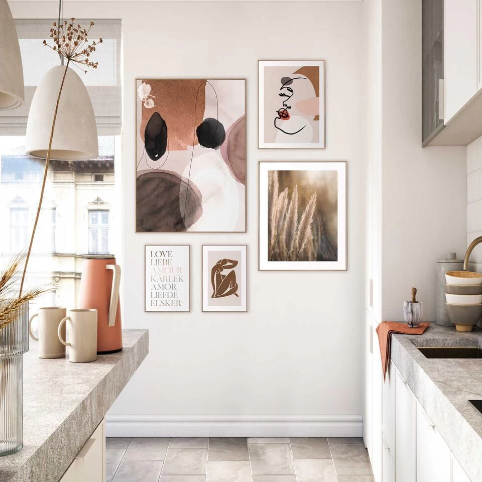 Set van vijf Slim Frames. Prachtige Art Prints zijn verwerkt op een 3mm dik MDF-bord. De stijlvolle prints worden omlijst door een dun frame. Je kunt deze wanddecoratie neerzetten of ophangen aan het frame. Door Slim Frames te combineren creëer je een fraaie en tijdloze decoratie voor iedere ruimte.Kenmerken
