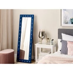Beliani Staande Spiegel ANSOUIS – Blauw Fluweel