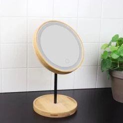 Orange85 Make-up Spiegel Scheerspiegel Led Touch Staand Rond Bamboo 18,9x31cm