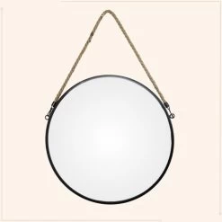 MISOU Spiegel Rond Met Touw Zwart Spiegels 37cm Wandspiegel