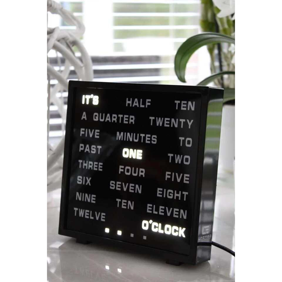 – Product: United Entertainment LED Word Clock – Engels 17×16,5 cm