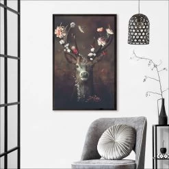 Ingelijste Poster Hert 93×63 Cm Bruin