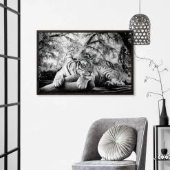 Ingelijste Poster Tijger 63×93 Cm Zwart-Wit