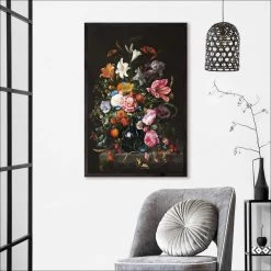 Ingelijste Poster De Heem Vaas Met Bloemen 93×63 Cm Bont