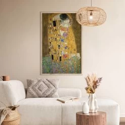 Ingelijste Poster Klimt De Kus 93,5×63 Cm Goudkleurig