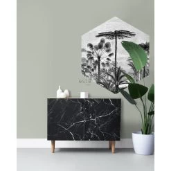 ESTAhome Muursticker – Tropisch Landschap Met Palmbomen – Zwart Wit