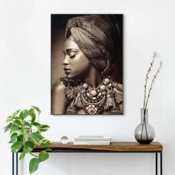 Schilderij Afrikaanse Vrouw 70×50 Cm Bruin