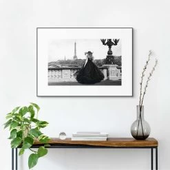 Schilderij Vrouw In Parijs 50×70 Cm Zwart-Wit